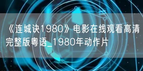 《连城诀1980》电影在线观看高清完整版粤语_1980年动作片