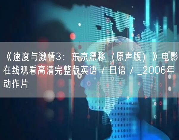 《速度与激情3:东京漂移(原声版)》电影在线观看高清完整版英语 / 日语 / _2006年动作片