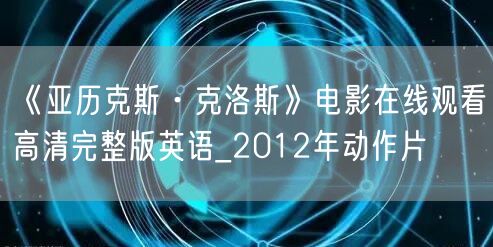 《亚历克斯·克洛斯》电影在线观看高清完整版英语_2012年动作片