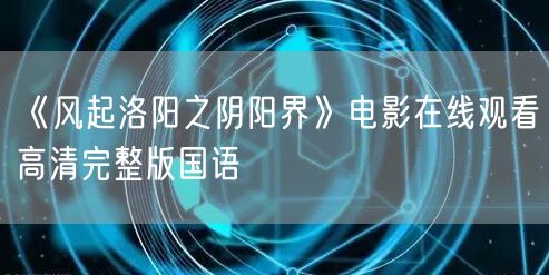 《风起洛阳之阴阳界》电影在线观看高清完整版国语