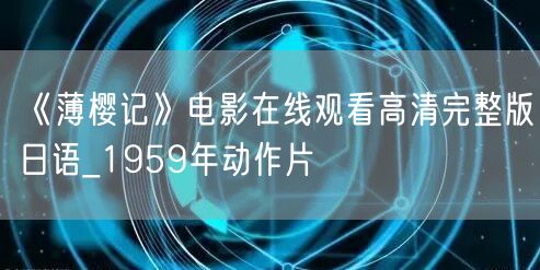 《薄樱记》电影在线观看高清完整版日语_1959年动作片